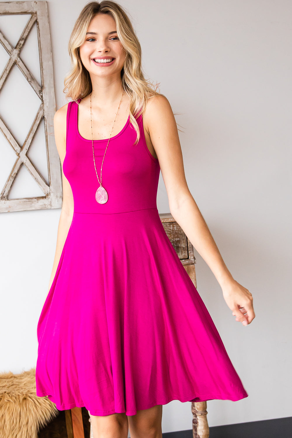 Sleeveless tank dress in soft heavy rayon spandex fabric.